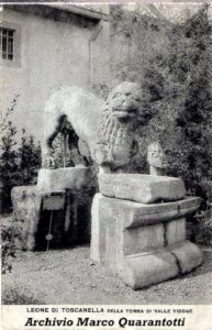 La foto d’epoca proveniente dall’Archivio Marco Quarantotti è tratta da Viaggio di sola andata. L’ordinaria dispersione del patrimonio archeologico di Tuscania, 2014 di Riccardo Fioretti.