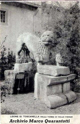 Il leone in oggetto, unitamente ad alcuni sarcofagi, fu acquistato dal Municipio di Toscanella nel novembre 1897 dal Direttore del Museo Archeologico di Firenze Luigi Adriano Milani per la somma complessiva di lire 750.
