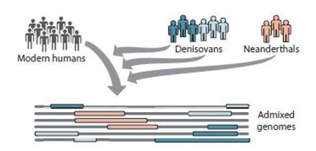 Gli esseri umani moderni hanno convissuto e si sono incrociati, oltre che con i Neanderthal, anche con un’altra specie umana arcaica, quella degli uomini di Denisova, dei quali si sa ancora pochissimo. In particolare, il mescolamento fra umani moderni e denisovani sarebbe avvenuto in due distinte occasioni, entrambe precedenti all’incrocio fra umani moderni e Neanderthal.