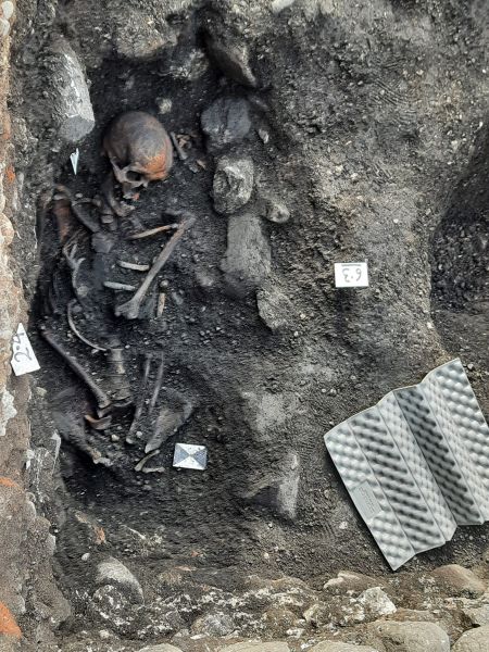 Negli ultimi giorni sono infine state messe in luce due sepolture prive di corredo, che le antropologhe Luciana Travan e Paola Saccheri della Facoltà di Medicina dell’Università degli Studi di Udine hanno identificato a seguito di un primo sopralluogo come appartenenti a un uomo e una donna piuttosto anziani.