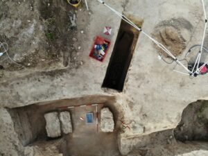“La necropoli – spiega Giambarbara – risale a un periodo compreso tra il VI e il V secolo a.C. e, sebbene ancora in corso di indagine, sembrerebbe organizzata in aree distinte, forse riconducibile a nuclei familiari, con una o due grandi sepolture centrali e una serie di altre tombe disposte intorno. Le sepolture presentano tutte un’architettura omogenea con una fossa più piccola spesso rivestita e coperta con lastre litiche e una controfossa più grande scavata intorno”.