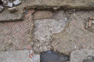 Si sviluppano sotto la pavimentazione in cotto realizzata alla fine del XII secolo ed a loro si appoggia una pavimentazione in battuto rosso che attualmente è stato datato all’alto medioevo.