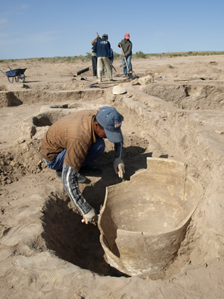 Interventi nel tessuto urbano hanno confermato che la struttura del pomerio (il corridoio che corre all’interno delle mura periferiche) e’ una caratteristica costante delle cittadelle della Civilta’ delle Oasi: al suo interno, o immediatamente all’esterno, si aprivano i magazzini e i laboratori artigiani, dove e’ stata rinvenuta la splendida placca ossea decorata a rosette. In questa occasione, in accordo con l’Istituto di Archeologia l’Universita’ di Bologna, Dipartimento di Storia-Cultura-Civilta’, si e’ tenuto il primo campo scuola con nove studenti sotto la guida della Prof. Barbara Cerasetti, un’esperienza che sara’ rinnovata anche nelle prossime missioni.