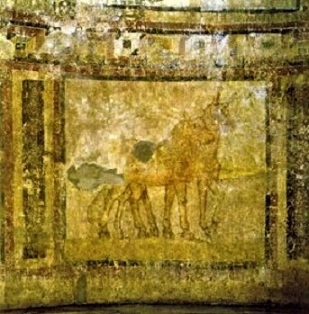 Altre pitture murali del medesimo periodo, ma con elementi naturalistici, si trovano anche nella volta dell’atrio.