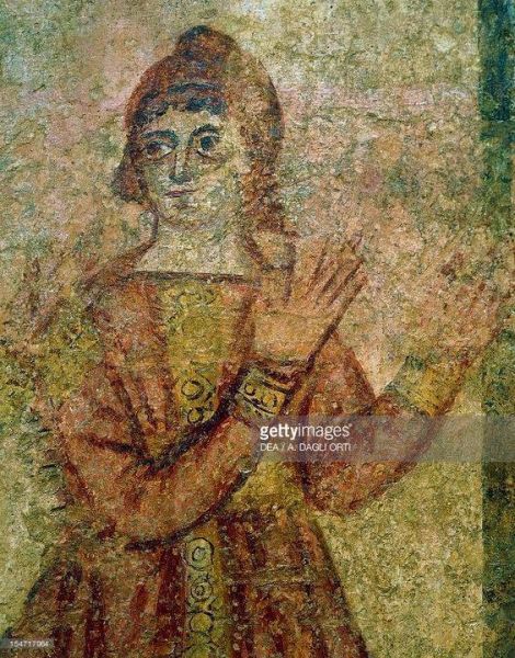 Nell’aula destra è sopravvissuta una rappresentazione della Manus Dei molto tarda, databile tra l’VIII e il IX secolo, mentre del secolo successivo è una rappresentazione della Vergine con il Bambino tra due angeli nella volta stellata che si trova nello spazio di sinistra e che diede il nome alla cappella.