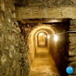 Le acque della sorgente sotterranea vengono convogliate e raccolte in una vasca limaria semicircolare scavata nella roccia, dove si depositano le impurità sospese nell’acqua; da qui parte il tracciato artificiale che scorre in un basso e stretto corridoio con copertura a volta a botte, lungo 100 metri e intervallato da quattro pozzi. A circa un quarto di questo cunicolo, in prossimità dell’ingresso agli spazi sotterranei cui si accede tramite quindici scalini, si trovano gli ambienti più interessanti: tramite un piccolo atrio a forma di croce che si apre lungo il corridoio si può accedere, sui due lati contrapposti, a due ampie stanze absidate caratterizzate da coperture a semicupola, al cui centro si trovano delle aperture rotonde.