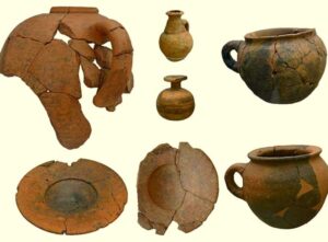 Nell’insediamento sono stati trovati reperti ceramici locali come lucerne, anfore, pentole e piatti, e vari materiali d’importazione, provenienti soprattutto dall’area greca.