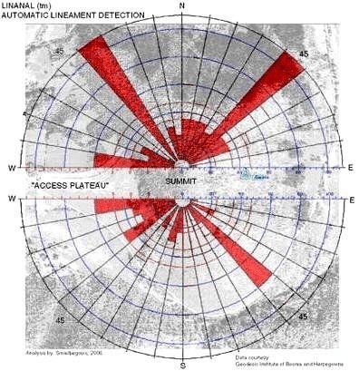 I rilievi collinari individuati da Osmanagich (membro esterno della Russian Academy of Natural Sciences e professore di Antropologia presso l’American University in Bosnia-Herzegovina) hanno una base quadrata e facce triangolari, con angoli d’inclinazione perfettamente regolari orientati verso i punti cardinali.